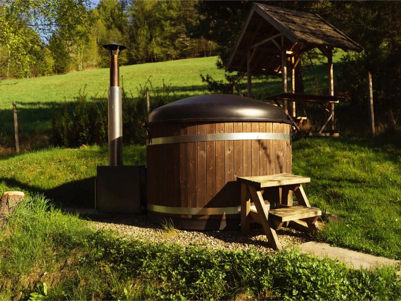 Dom o powierzchni i wyposażeniu identycznym jak Jeleń. Z tarasu wejście po kilku schodkach bezpośrednio do balii fińskiej oraz widok na sad i pobliski las. Wnętrze w tonacji niebieskiej – powód prosty – sowa jest bliżej błękitu nieba niż jeleń. Sowa jest otoczona z trzech stron pięknymi rabatami kwiatowymi i posiada swój olejny portret we wnętrzu. Sowy będą Wam towarzyszyć o każdej porze roku, będziecie je słyszeć wieczorami, a nieraz się pokażą na pobliskich drzewach.